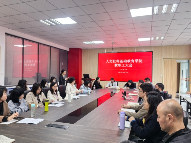 10月21日,人文社科基础教育学院在财经楼205会议室召开教职工大会。党总支书记杨婧、9个教研室负责人及全体专职教师参加会议。全院教职工齐聚一堂,共商学院发展大计。会议由学院副院长夏仁娟主持。